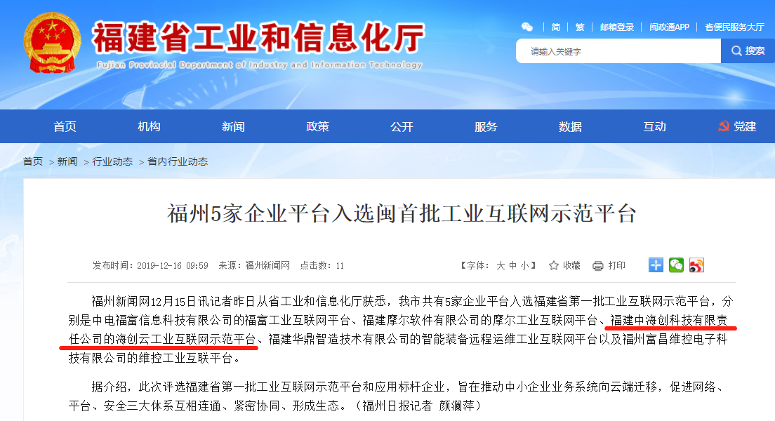 近日,福建省工业和信息化厅公示了福建省首批工业互联网示范平台和应用标杆企业名单。aty爱体育(中国)aty爱体育(中国)首页官方网站官方网站科技海创云工业互联网平台在众多参评企业中脱颖而出,成功入选。