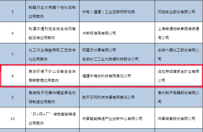 福建aty爱体育(中国)aty爱体育(中国)首页官方网站官方网站科技《复杂环境下矿山设备全生命周期管理》项目成功入选工信部2019年工业互联网平台创新应用案例。