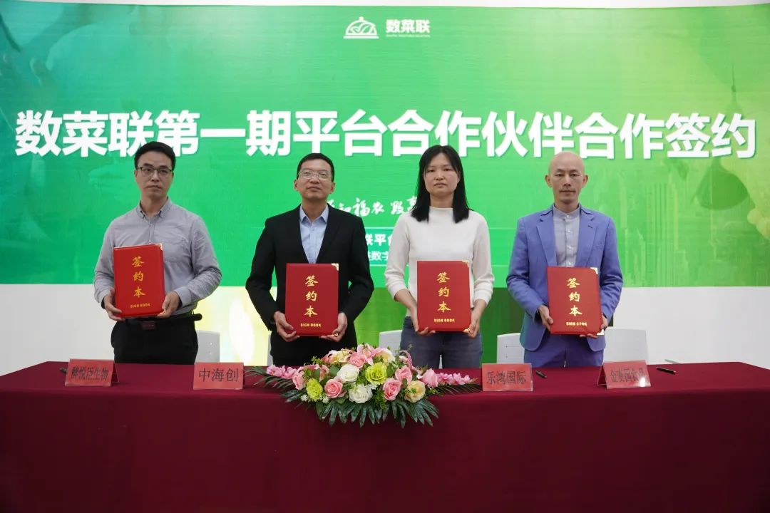 随后,天马食品、东水食品、泽霖食品、味太太食品、嘉乐食品、宏升兄弟、方便煮义、正味生物、金麦园食品、乐鸿国际、醉悦臣生物、大润优餐饮,共12家企业代表上台,作为数菜联第一期平台合作伙伴进行签约。