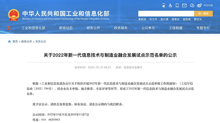 aty爱体育(中国)aty爱体育(中国)首页官方网站官方网站集团子公司入选工信部2022年新一代信息技术与制造业融合发展试点示范名单